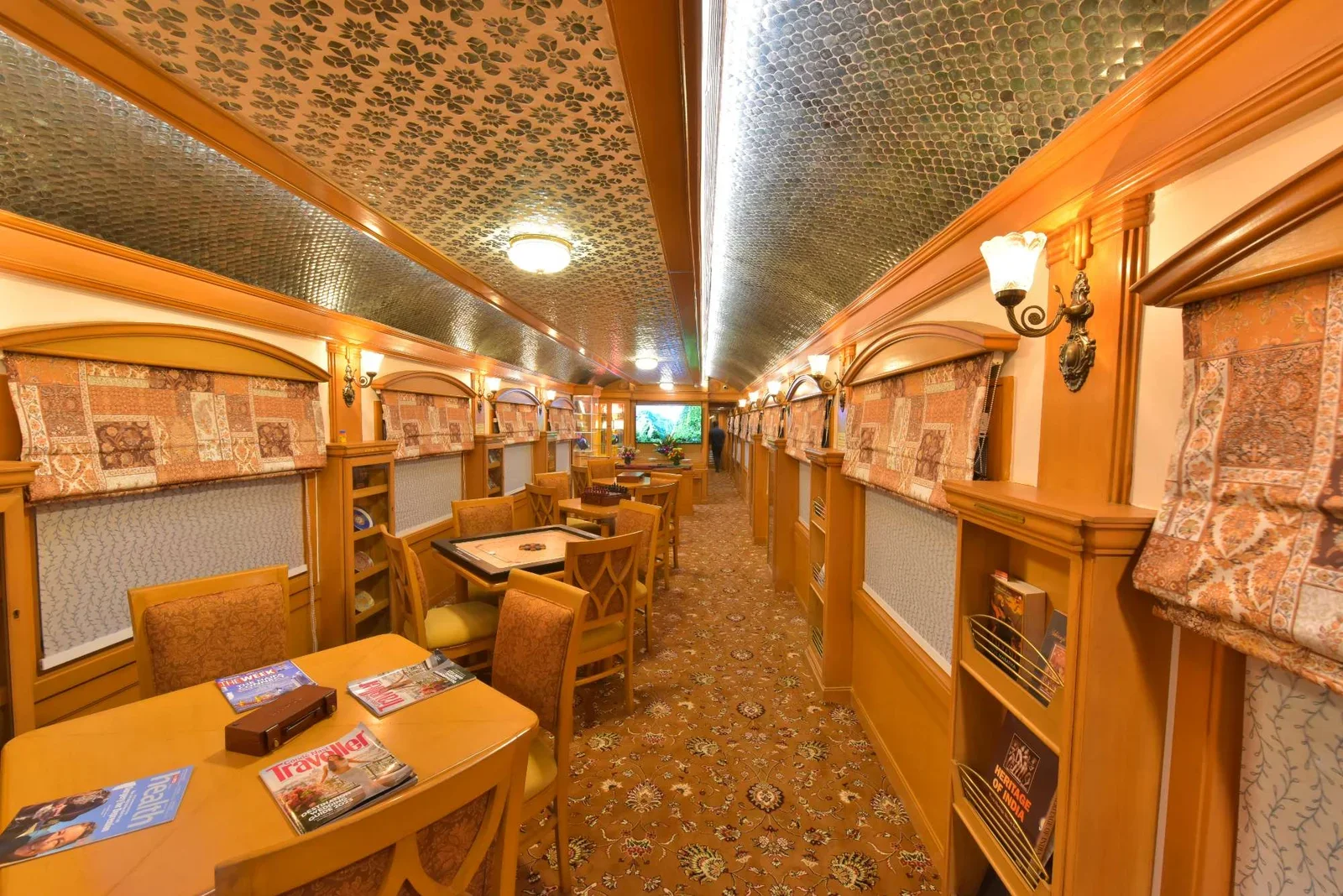 The train also has a sitting lounge where guests can relax and chat with their fellow travelers while on the go. You can also pick up a book available in this lounge .