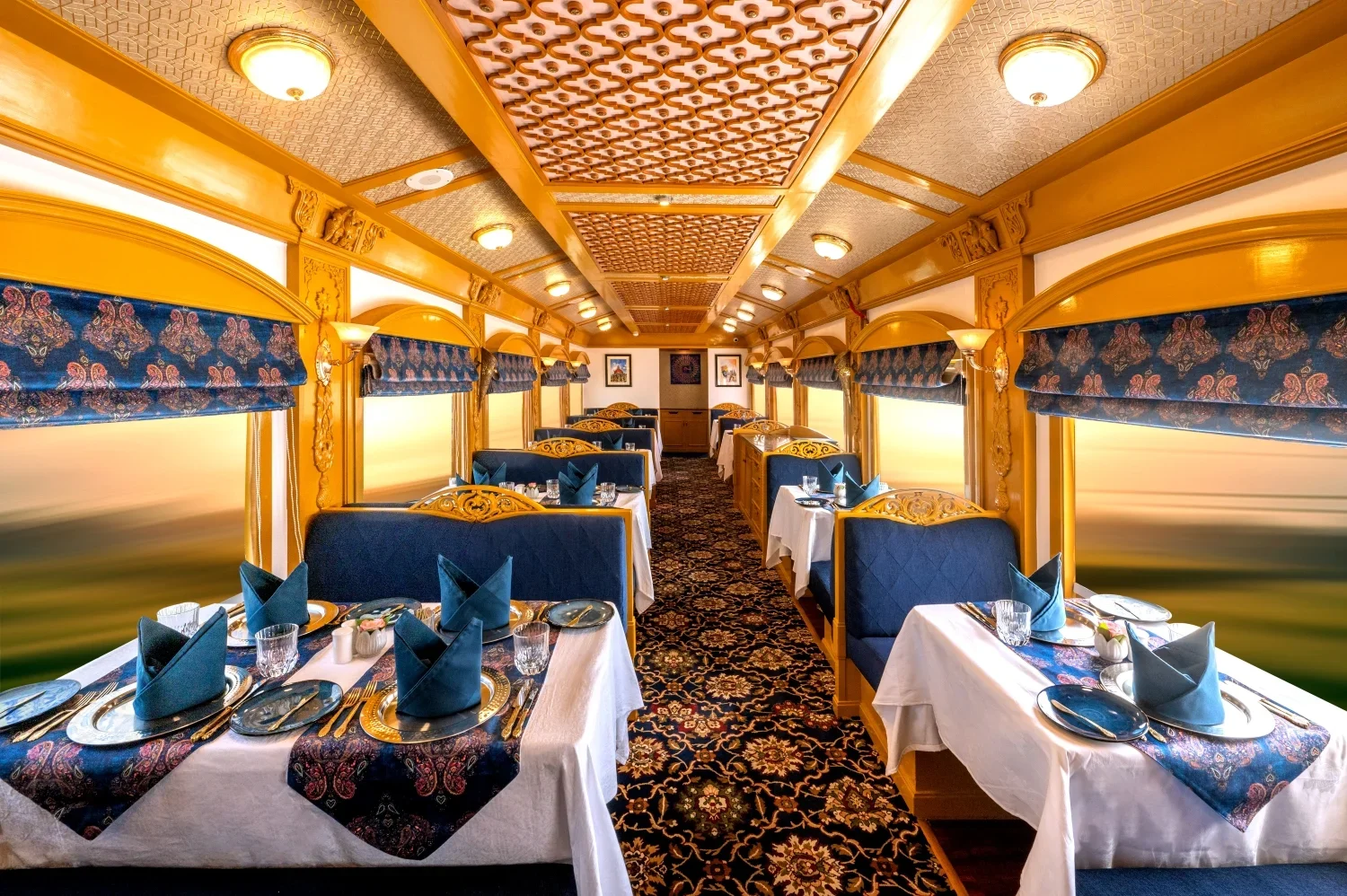 From there, your journey unfolds on the train through India’s heartland — a seamless passage through changing landscapes, regal palaces, bustling bazaars, and lush sanctuaries — all from the comfort of your luxurious hotel on rails.