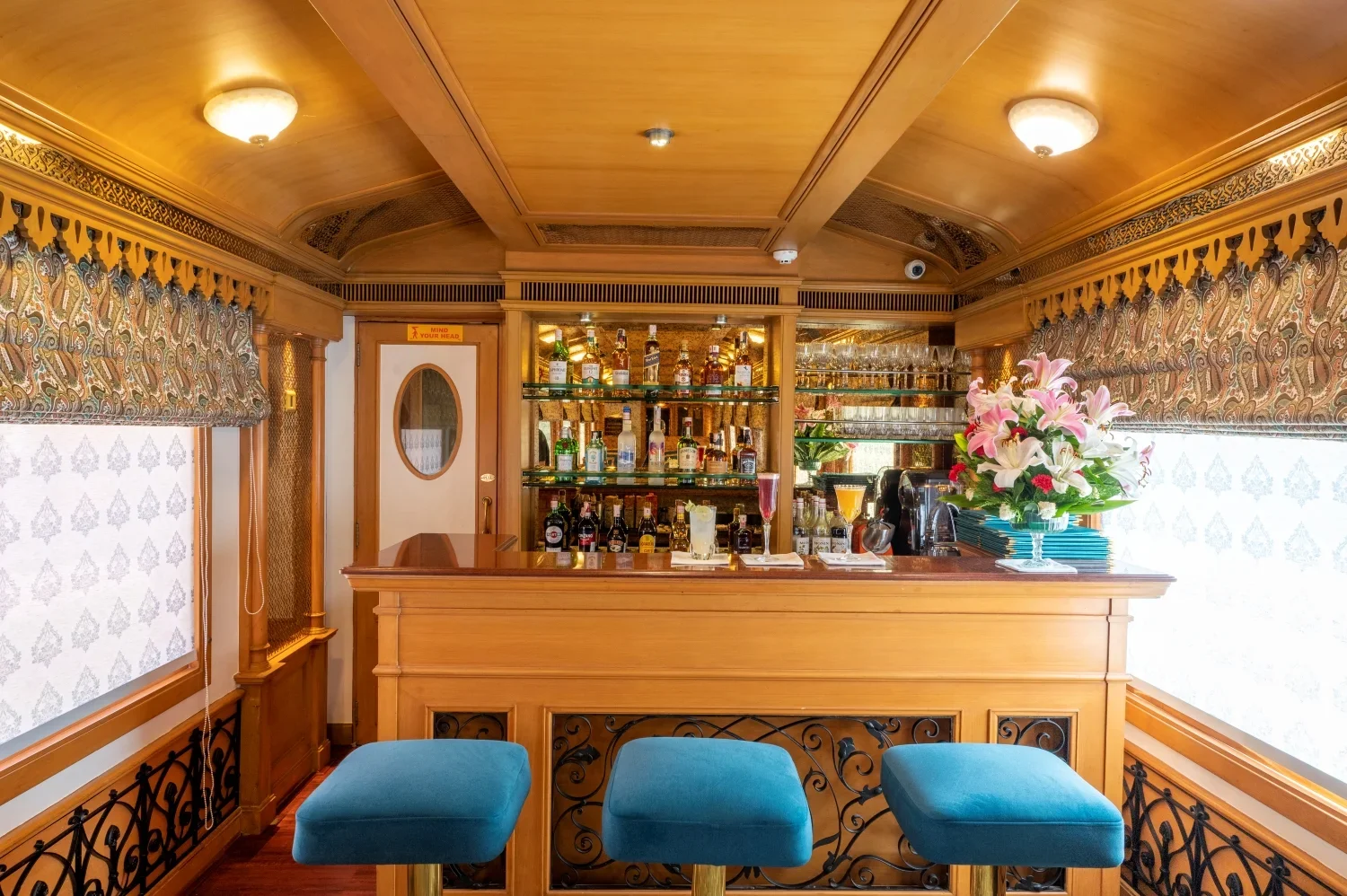 The bar of Deccan Odyssey, Mumbai Hi, is the ultimate place to taste some of the best varieties of wines and spirits collected from all around the world. Along with that the bar also serves non-alcoholic beverages in a relaxing ambience.